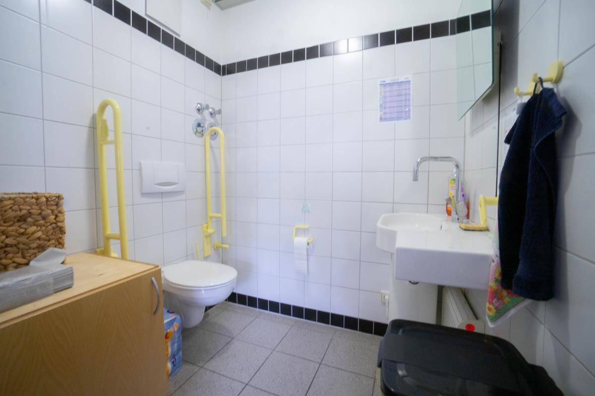 Es befindet sich eine Toilette mit Waschbecken für Sie und Ihre Kunden im hinteren Teil der Ladenfläche.