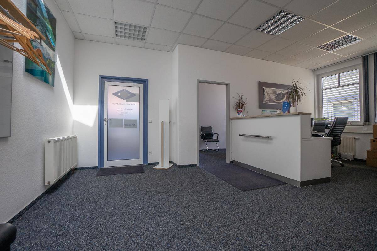 Der Empfangsbereich ist großzügig gestaltet und schafft bereits beim Betreten einen einladenden ersten Eindruck. Fünf helle, individuell nutzbare Räume bieten ausreichend Platz für Behandlungs-, Beratungs- oder Büronutzung. Ergänzt wird die Einheit durch zwei separate WCs sowie eine Teeküche mit Einbauküche.