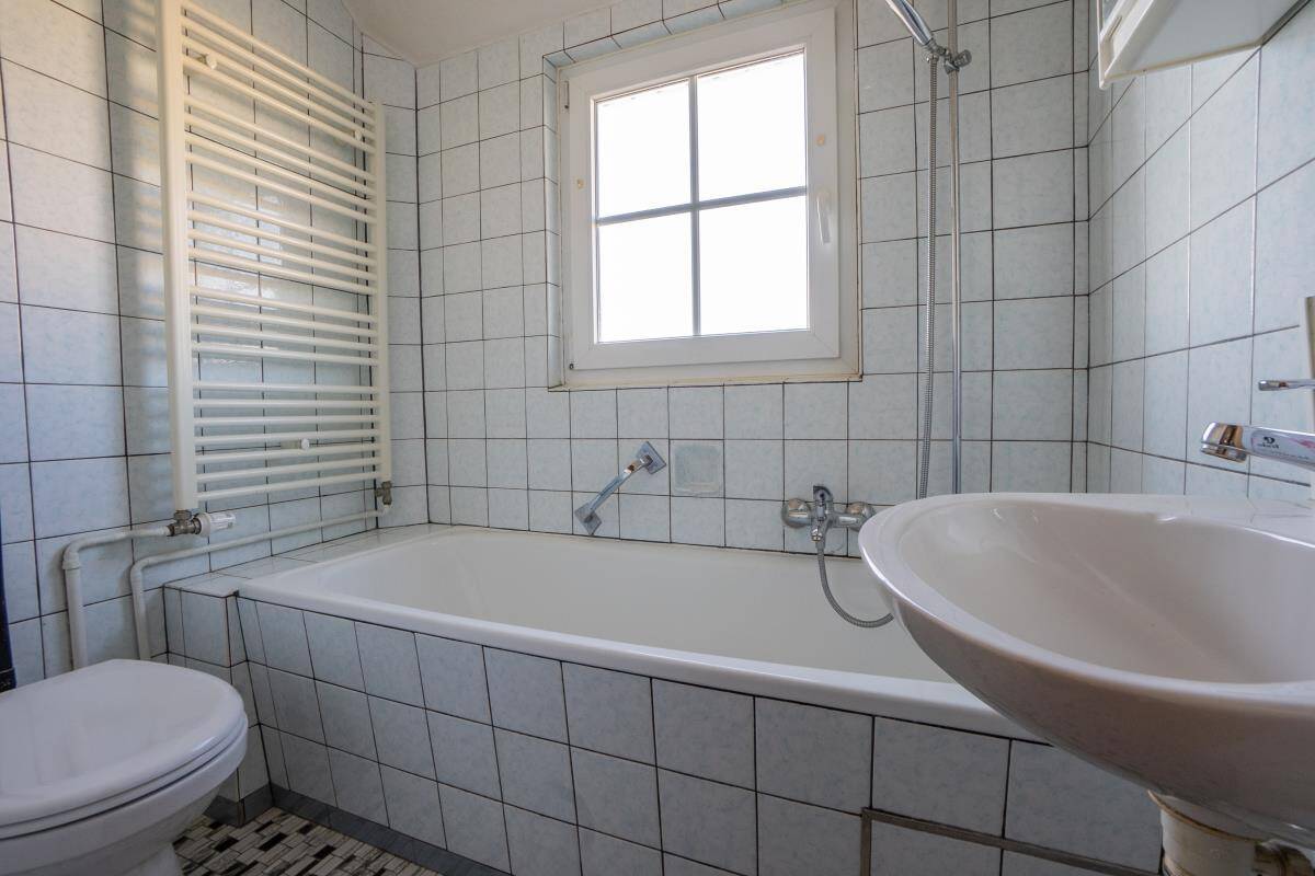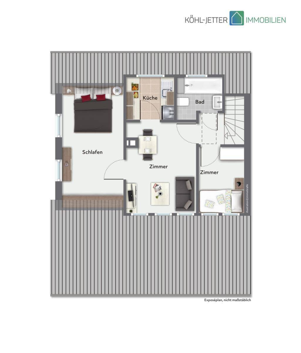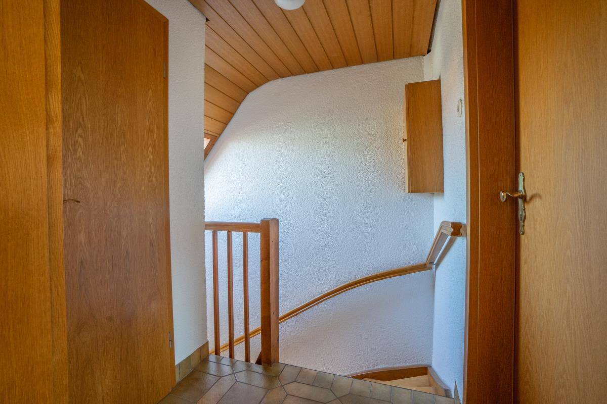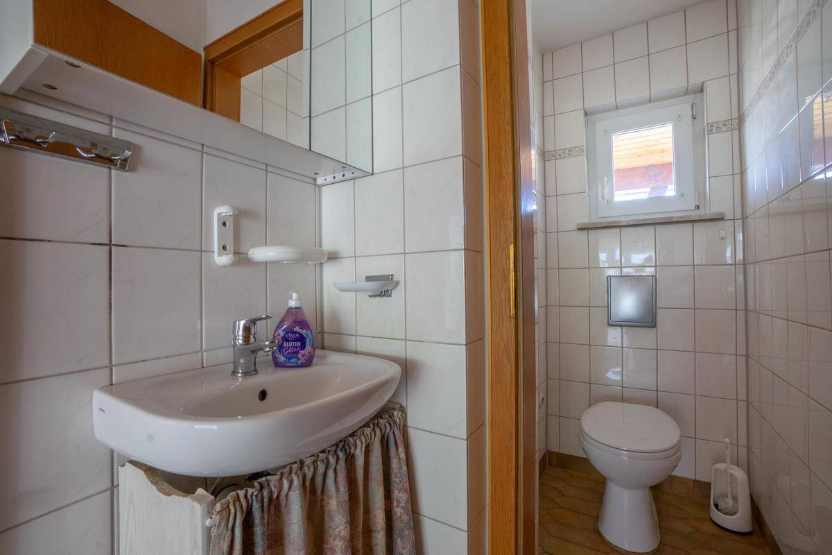 Im Obergeschoss des Hauses befinden sich 2-3 Schlaf-/Kinderzimmer, ein Tageslichtbad mit Badewanne und WC sowie ein kleiner, separater Küchenbereich. Dieser könnte auch als Erweiterung für ein großes Badezimmer genutzt werden. Über eine Zugtreppe im Treppenhaus gelangen Sie auf die Bühne, welche zusätzliche Staumöglichkeiten bietet.