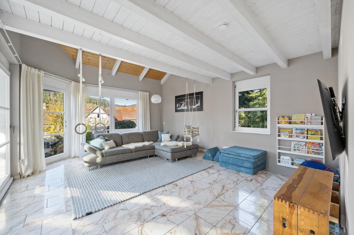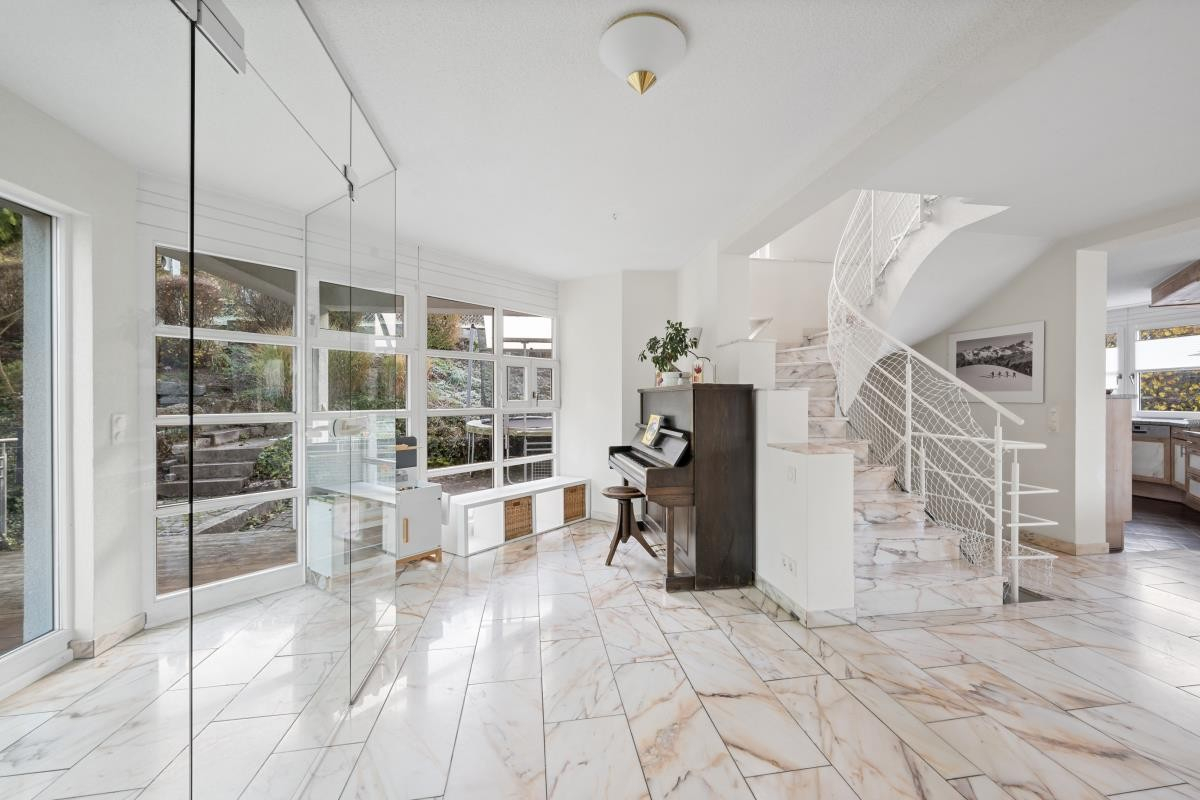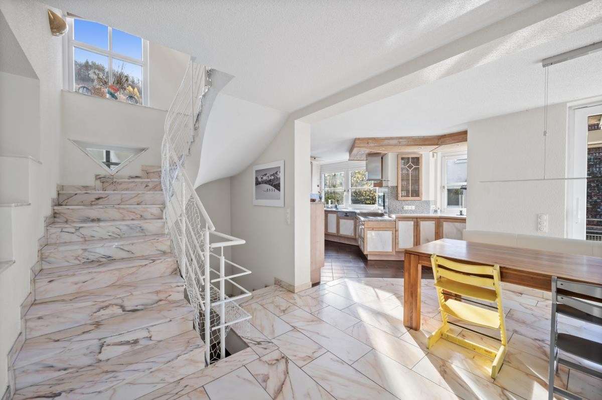 In zentraler Lage von Albstadt-Margrethausen präsentiert sich dieses architektonisch anspruchsvoll konzipierte Wohnhaus, das durch seine besondere Bauweise in Halbgeschossen, seine Großzügigkeit und seine harmonische Einbettung in das Gelände beeindruckt.