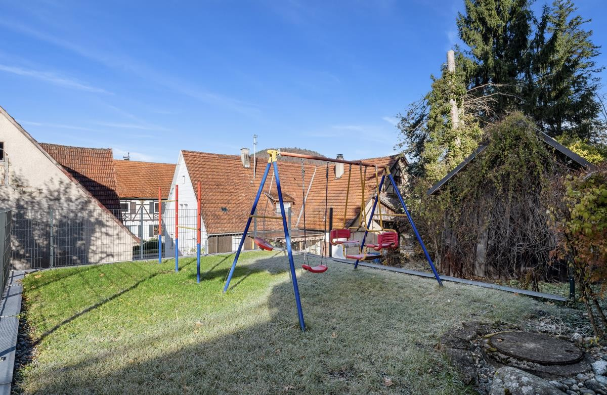 Das Anwesen umfasst ein Grundstück von 614 m² sowie ein zusätzliches, unmittelbar angrenzendes Grundstück mit weiteren 499 m², das noch mit einem alten Bauernhaus bebaut ist – ideal für vielfältige Nutzungsmöglichkeiten oder spätere Entwicklungsoptionen.