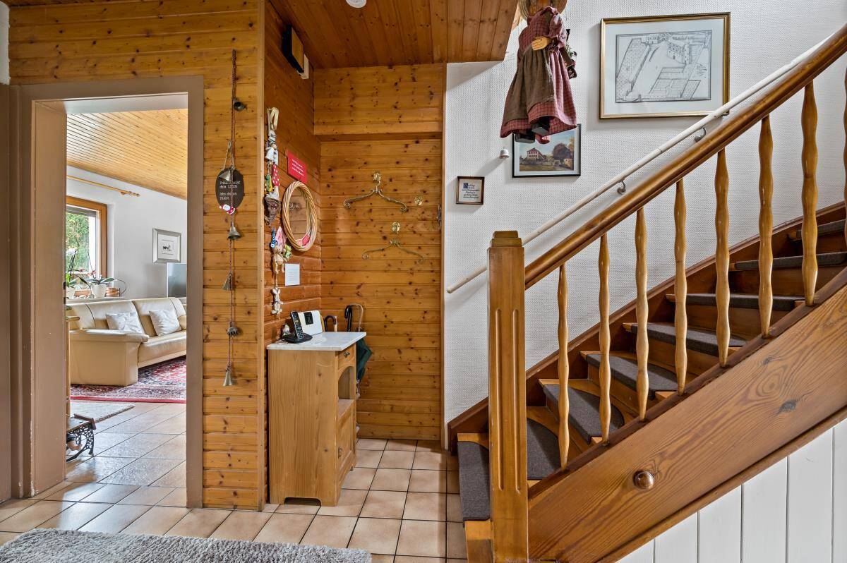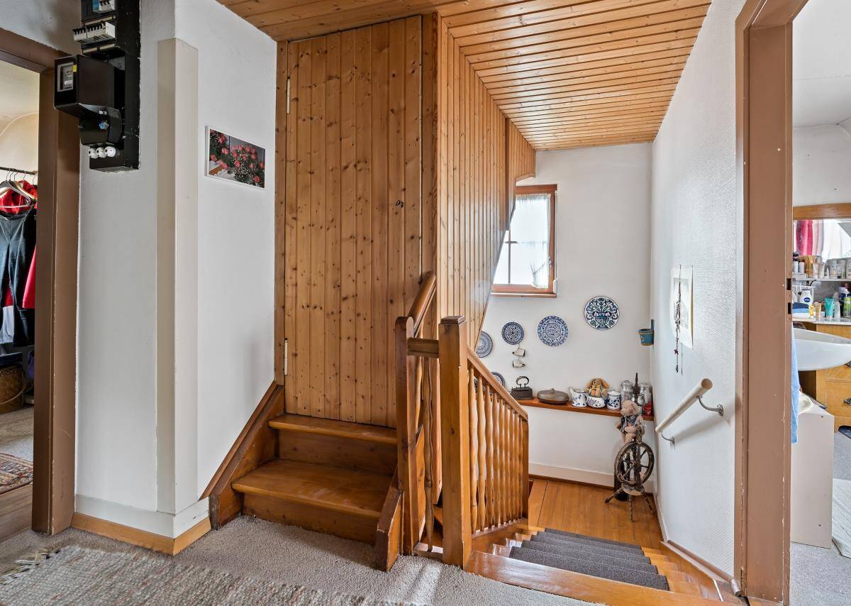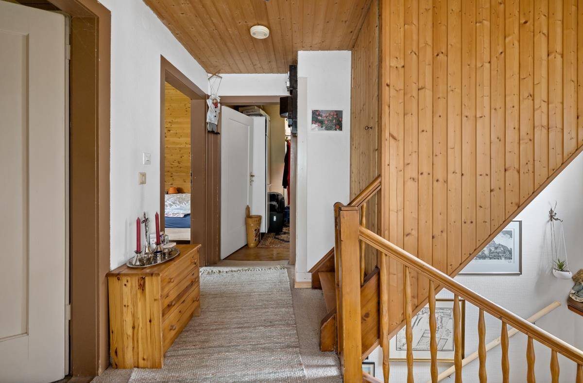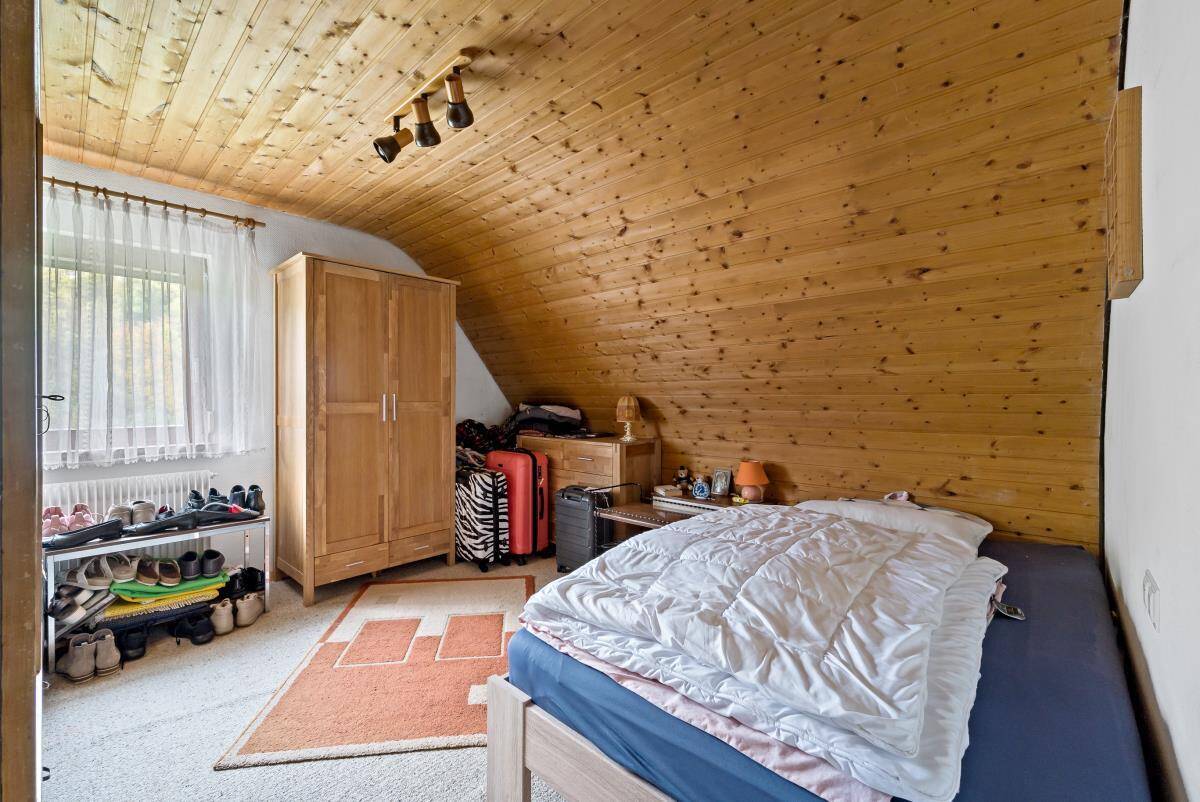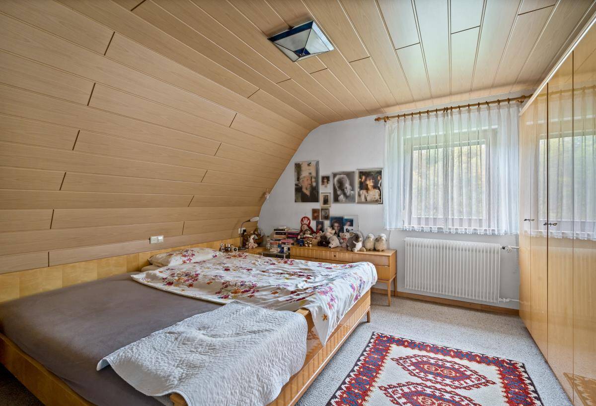 Über das Treppenhaus gelangen Sie in das Dachgeschoss des Hauses. Auf dieser Wohnebene befinden sich drei Schlaf-/Kinderzimmer sowie ein Zimmer mit Waschbecken und WC. Dieses Zimmer könnte als Badezimmer ausgebaut werden. Über eine interne Treppe erreichen Sie den Dachspitz. Dieser Bereich kann als Abstellfläche oder zum Ausbau von weiterer Wohnfläche genutzt werden. Im Untergeschoss des Hauses befindet sich ein Gewölbekeller, eine Werkstatt, der Heiz-/Waschraum sowie eine Sauna mit Dusche. Die Heizanlage wurde im Jahr 1996 erneuert. Vor wenigen Jahren wurde ein neuer Brenner eingebaut.
