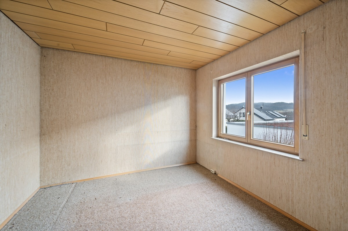 Die Wohnfläche von ca. 132 m² verteilt sich auf fünfeinhalb Zimmer und bietet eine funktionale sowie familiengerechte Raumaufteilung. Große Fensterflächen sorgen für eine freundliche, helle Wohnatmosphäre. Von verschiedenen Bereichen des Hauses genießt man zudem eine schöne Aussicht über die Umgebung.