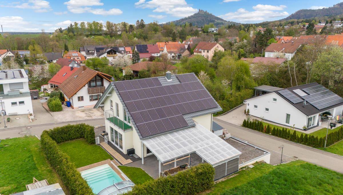 Das Haus wurde im Jahr 2017 mit einer PV-Anlage inkl. Speicher mit 14 kWp ausgestattet, welche bereits im Kaufpreis enthalten ist. Der Speicher hat ein Speicherkapazität von 10 kWp.
