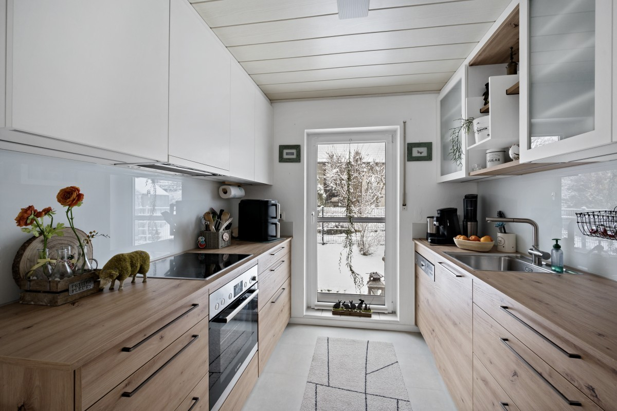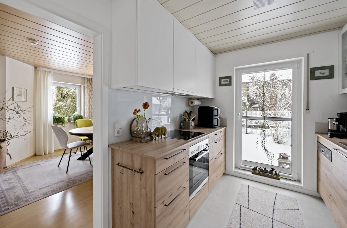 Im Erdgeschoss empfängt das Haus mit einer ansprechenden und durchdachten Raumaufteilung. Hier befinden sich ein separates WC, ein Büro sowie ein großzügiger, lichtdurchfluteter Wohn- und Essbereich, der den zentralen Mittelpunkt des Hauses bildet. Der angrenzende Küchenbereich ist mit einer neuwertigen Einbauküche aus dem Jahr 2024 ausgestattet. Vom Wohn- und Essbereich aus gelangt man direkt auf die sonnige Terrasse mit Übergang in den gepflegten Gartenbereich, der zum Verweilen einlädt. Ein Gartenhaus sowie eine Rasensprinkleranlage runden die Außenanlage praktisch und komfortabel ab.
