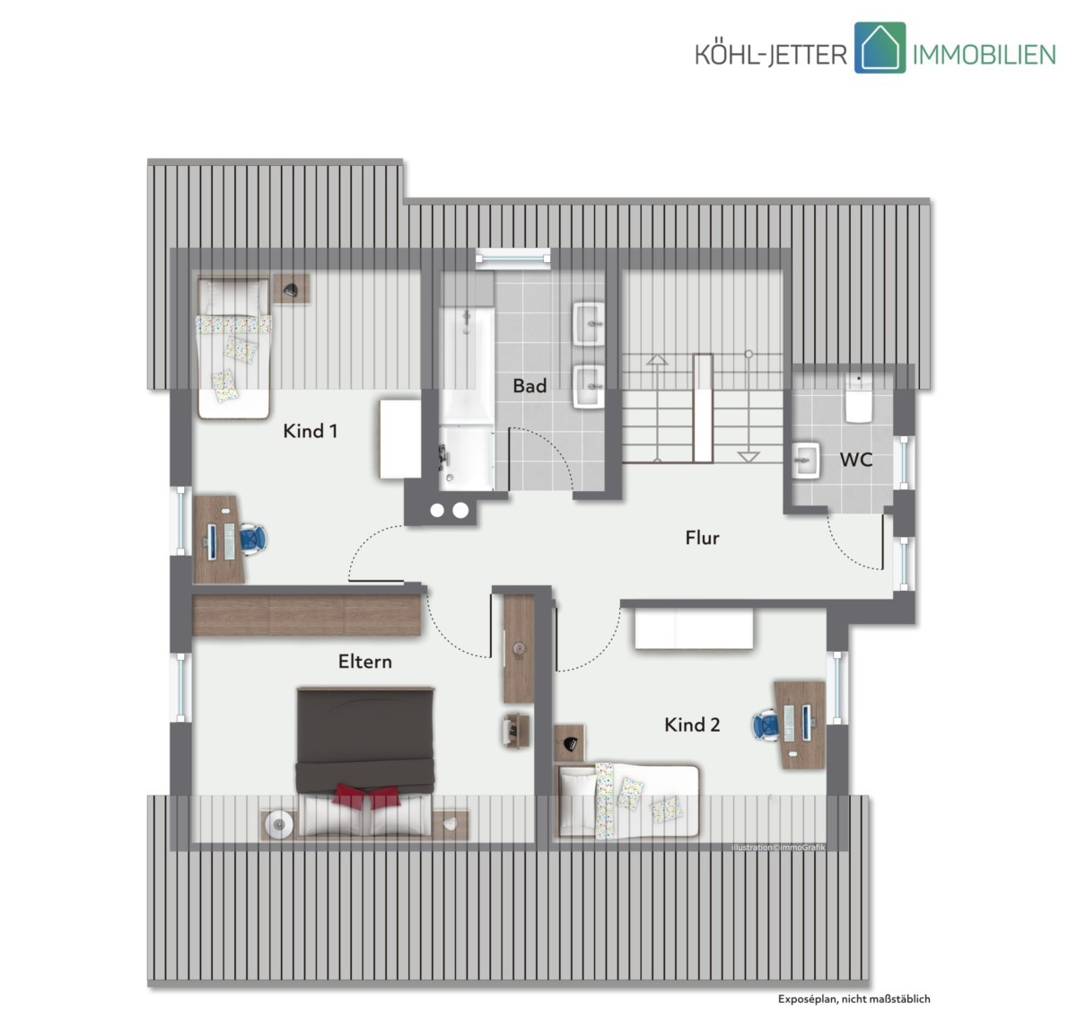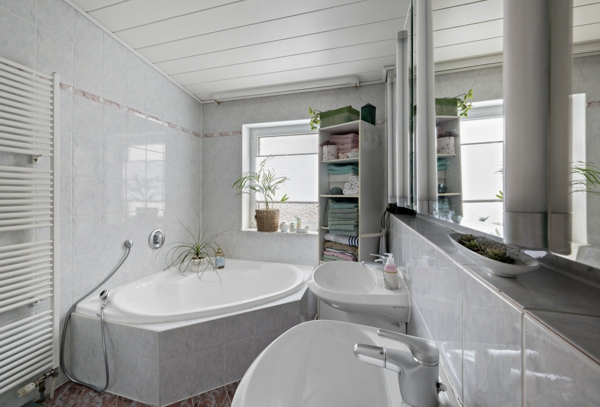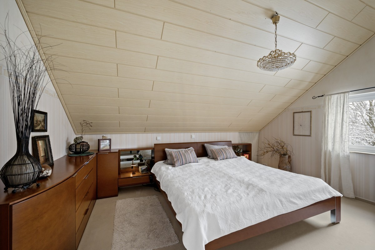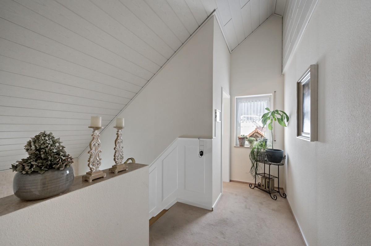 Im Obergeschoss stehen drei gut geschnittene Schlaf- bzw. Kinderzimmer zur Verfügung. Ergänzt wird diese Ebene durch ein separates WC sowie ein Tageslichtbad mit Dusche und Badewanne.