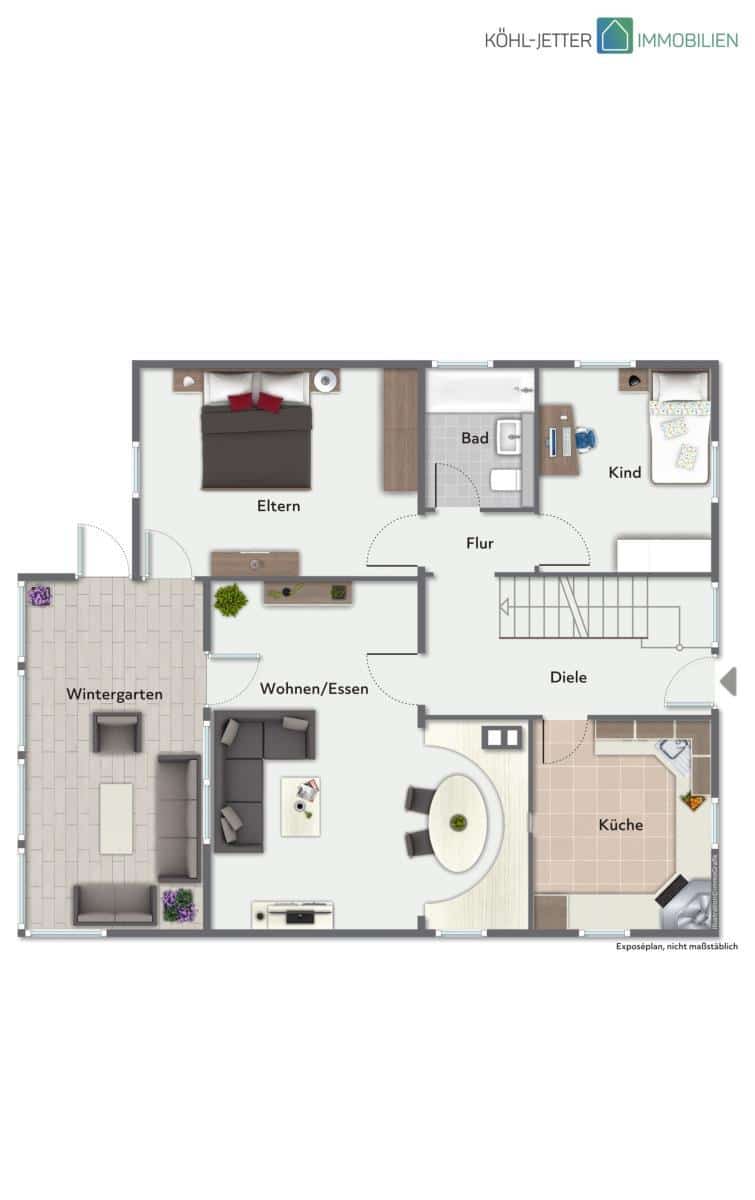 Im Erdgeschoss erwartet Sie ein großzügiges Wohn-/Esszimmer sowie ein Wintergarten mit viel Tageslicht – der perfekte Ort für gemeinsame Stunden mit Familie oder Freunden. Zwei gut geschnittene Schlafzimmer bieten vielfältige Nutzungsmöglichkeiten, sei es als Kinder-, Gäste- oder Arbeitszimmer. Ein Tageslichtbad mit Badewanne und WC sowie die separate Küche mit gepflegter Einbauküche runden das Raumangebot auf dieser Ebene ab.