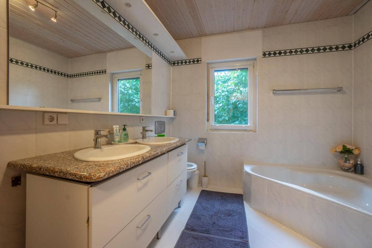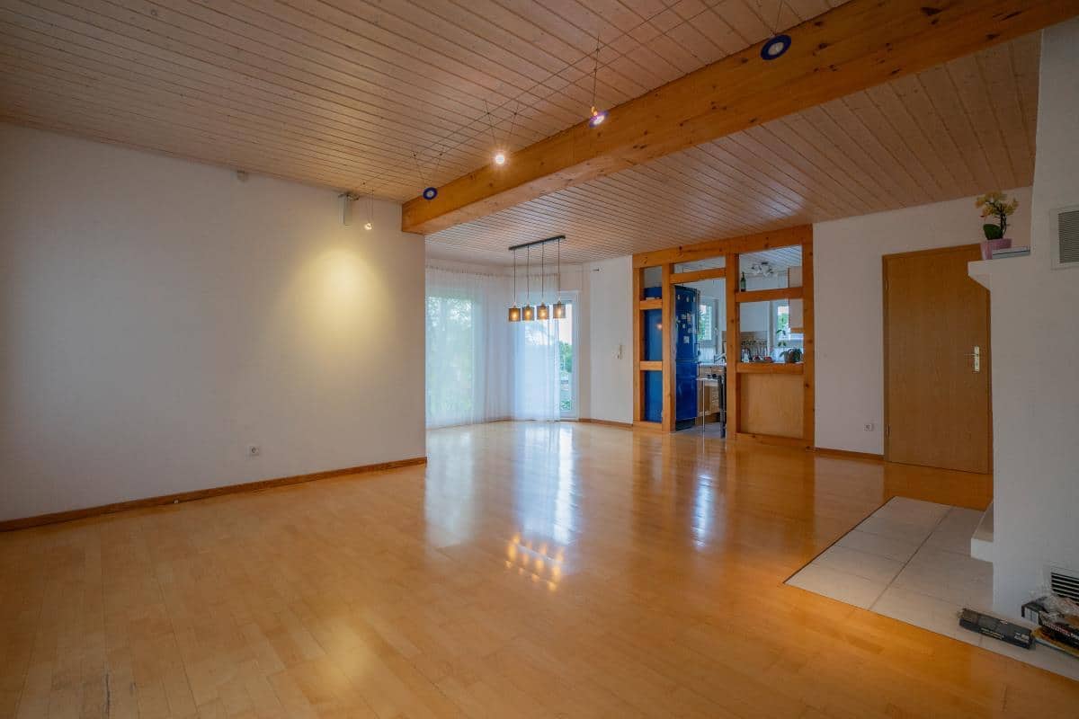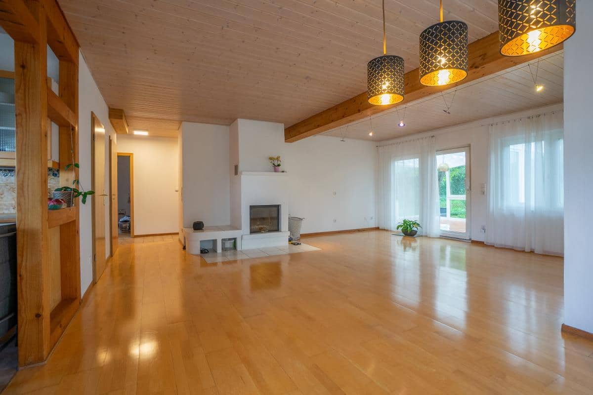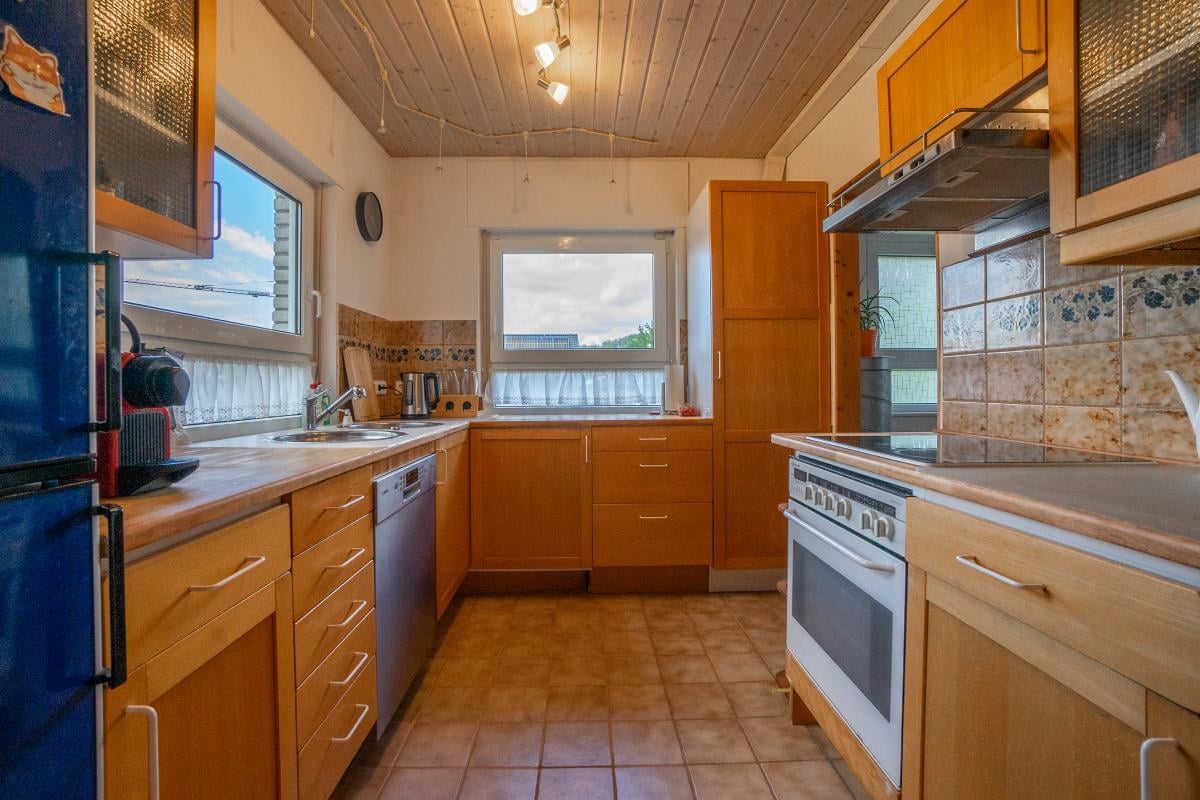 Dieses sonnige Ein-/Zweifamilienhaus, mit idealer Aufteilung, wurde im Jahr 1993 erbaut und steht auf einem ca. 950 m² großen Grundstück. Über den Hofbereich gelangen Sie über ein paar Außentreppen zum Hauseingang. Über den Flurbereich erreichen Sie den hellen, großzügigen Wohn-/Essbereich mit idealer Raumaufteilung. Auf dieser Wohnebene befindet sich zudem ein geräumiges Tageslichtbad mit Dusche, großer Badewanne und WC, der offene Küchenbereich sowie zwei weitere Zimmer, welche sich individuell nutzen lassen. Der Küchenbereich ist mit einer Einbauküche ausgestattet, welche bereits im Mietpreis enthalten ist. Eine Speisekammer neben der Küche sorgt für zusätzlichen Komfort.