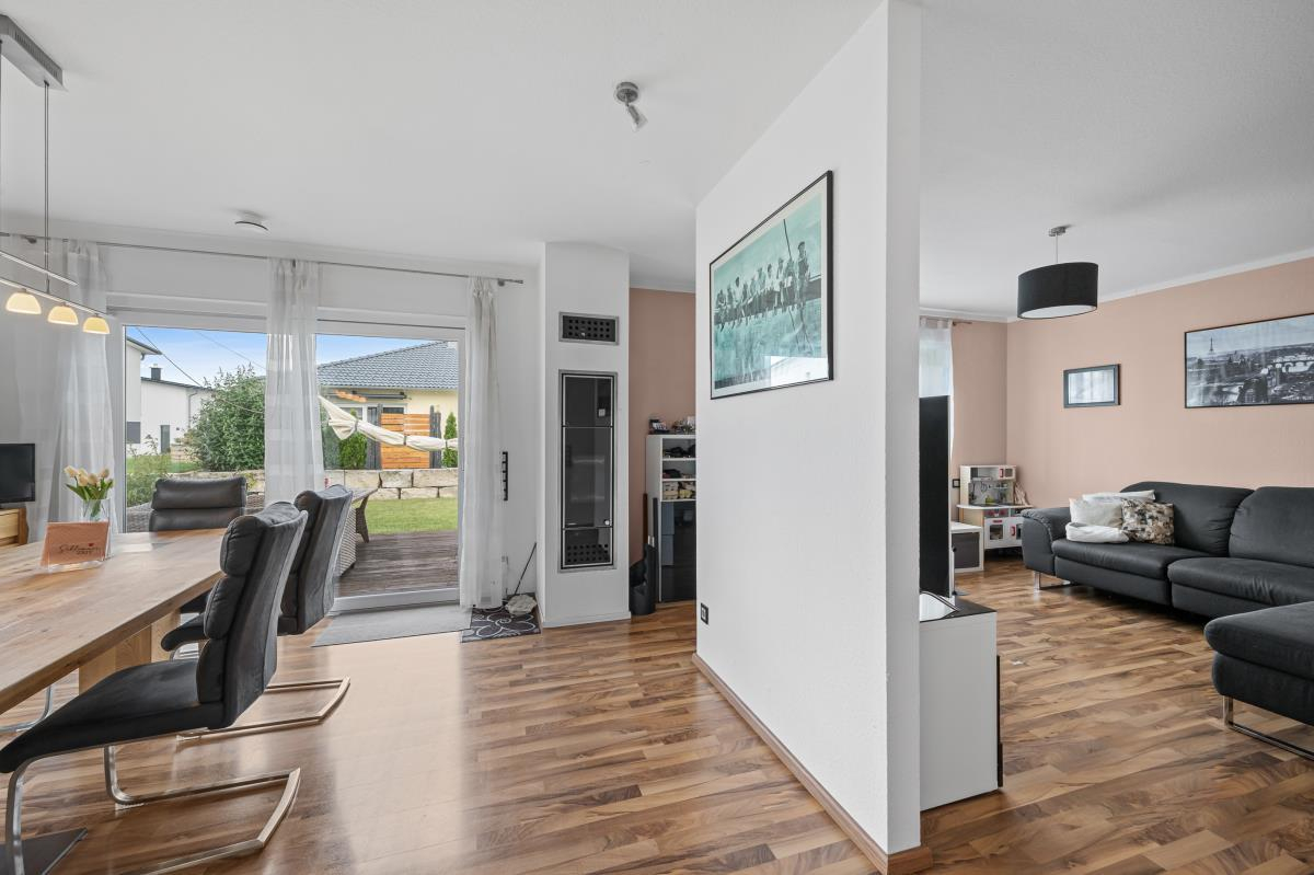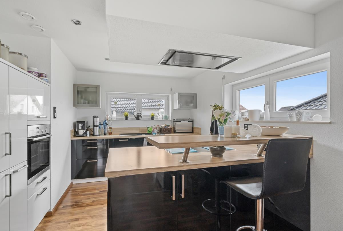 Die hohe Qualität sowie der durchdachte Grundriss werden Sie begeistern. Schon der offene und einladende Dielenbereich verspricht ein einzigartiges Wohnerlebnis. Der Flurbereich leitet Sie in den lichtdurchfluteten Wohn-/Essbereich mit angrenzendem, offenem Küchenbereich. Der Küchenbereich mit Kochinsel ist mit einer modernen Einbauküche ausgestattet, welche bereits im Kaufpreis enthalten ist. Ein Holzofen sorgt für ein angenehmes Raumklima in der kalten Jahreszeit.