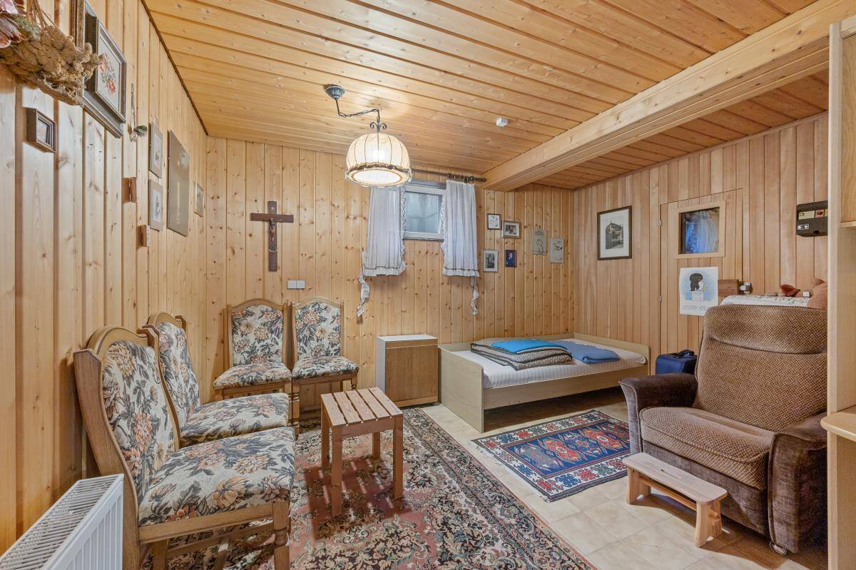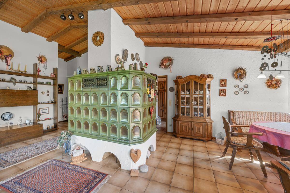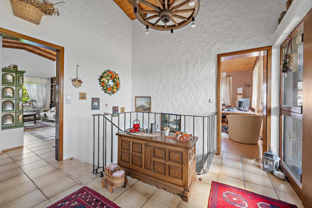 Mit insgesamt zwei Schlafzimmern sowie einem großen Hobbybereich im Untergeschoss bietet das Haus ausreichend Platz für Paare mit Anspruch an Komfort und Privatsphäre – sei es für Gäste, Homeoffice oder Hobbyräume. Besonders praktisch: Das gesamte Wohnen ist auf einer Ebene möglich – ideal für alle, die Wert auf barrierearmes Wohnen legen. Im Wohnbereich sorgt ein großer Kachelofen für ein angenehmes Raumklima in der kalten Jahreszeit.