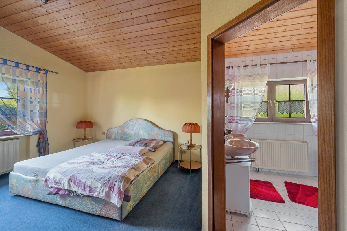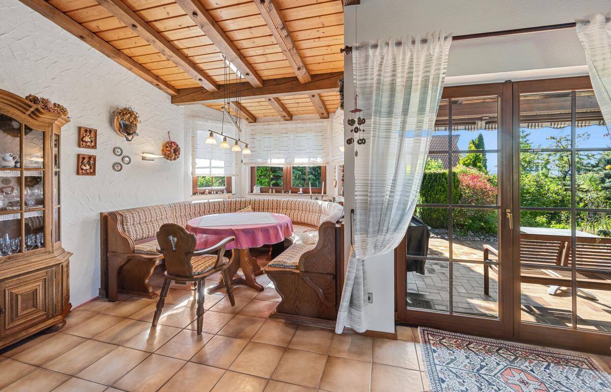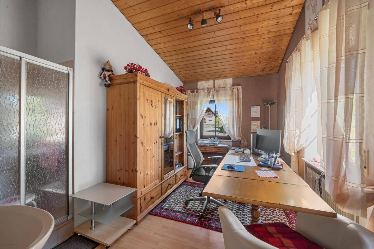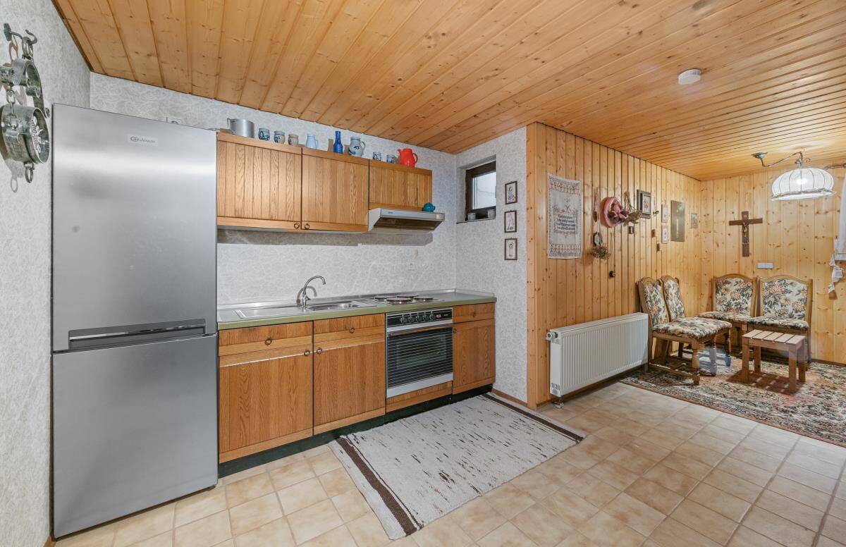 Mit insgesamt zwei Schlafzimmern sowie einem großen Hobbybereich im Untergeschoss bietet das Haus ausreichend Platz für Paare mit Anspruch an Komfort und Privatsphäre – sei es für Gäste, Homeoffice oder Hobbyräume. Besonders praktisch: Das gesamte Wohnen ist auf einer Ebene möglich – ideal für alle, die Wert auf barrierearmes Wohnen legen. Im Wohnbereich sorgt ein großer Kachelofen für ein angenehmes Raumklima in der kalten Jahreszeit.