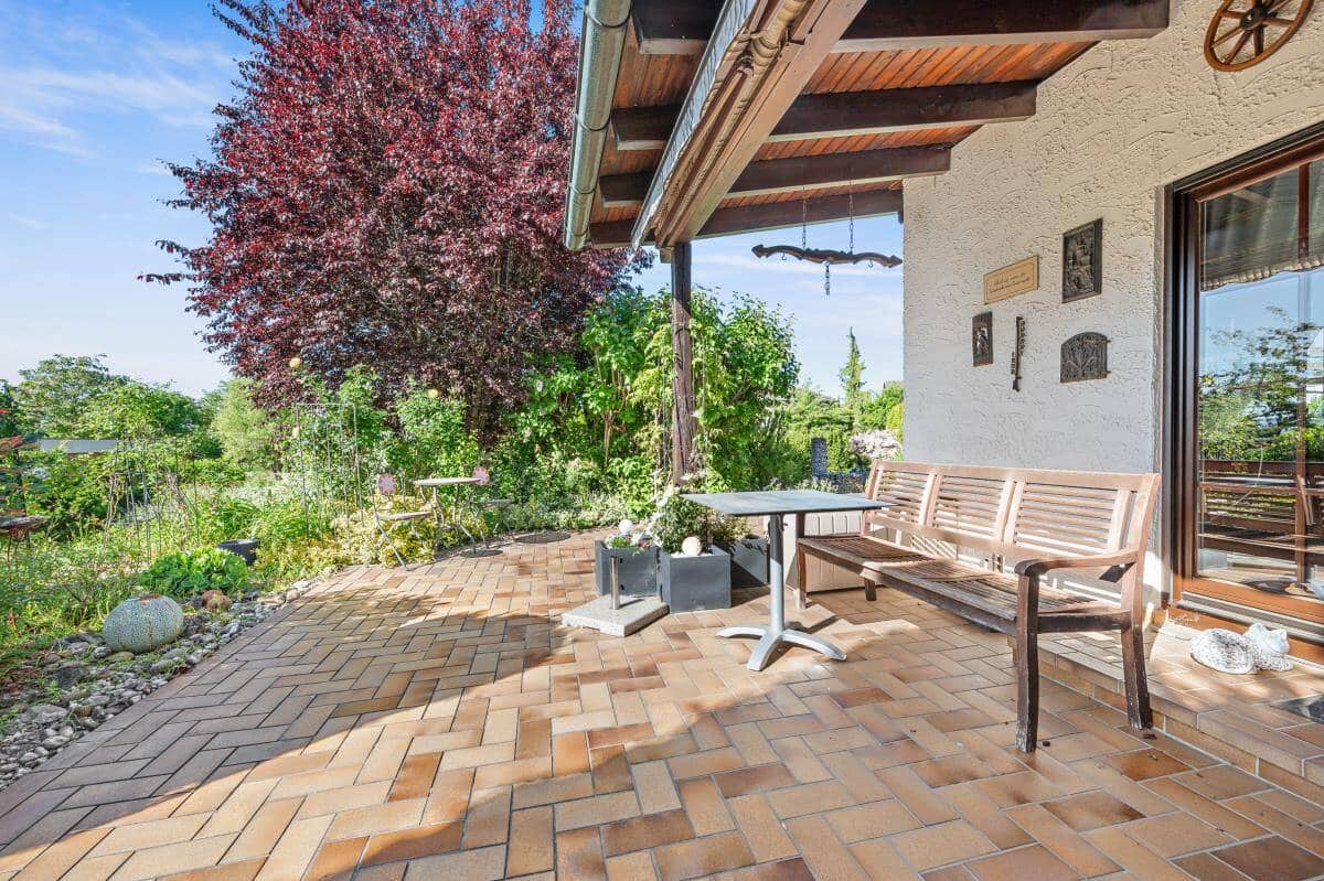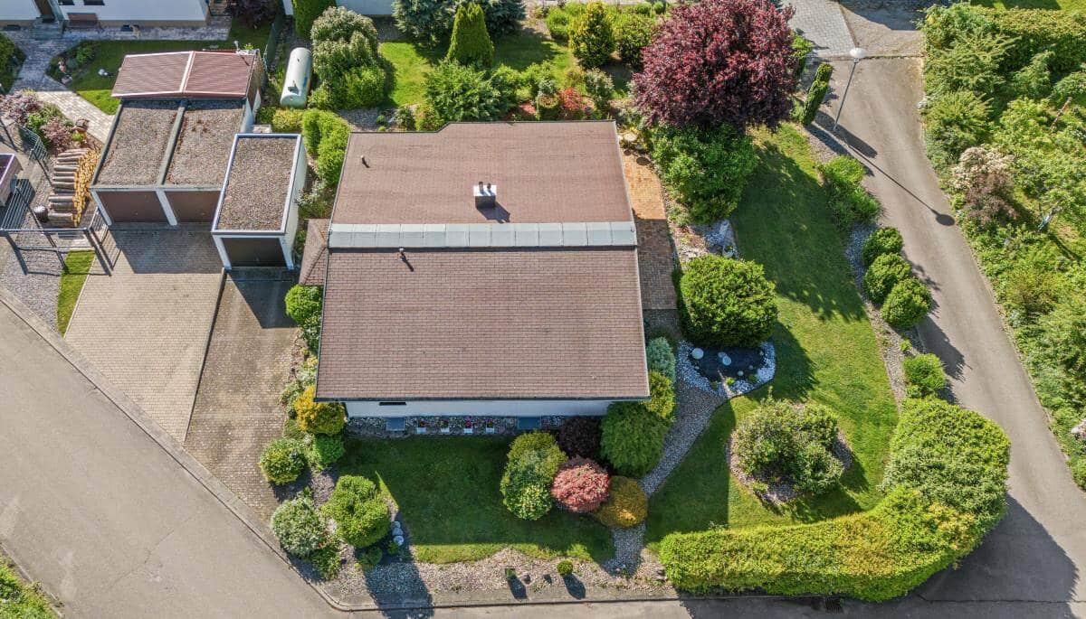 Das massiv gebaute Einfamilienhaus befindet sich auf einem sonnigen Grundstück mit ca. 914?m² Fläche – ein echtes Paradies für Gartenliebhaber. Ob Gemüsebeet, Blütenpracht oder einfach nur entspannte Stunden auf der Terrasse: Hier genießen Sie Ihre grüne Oase in vollen Zügen.