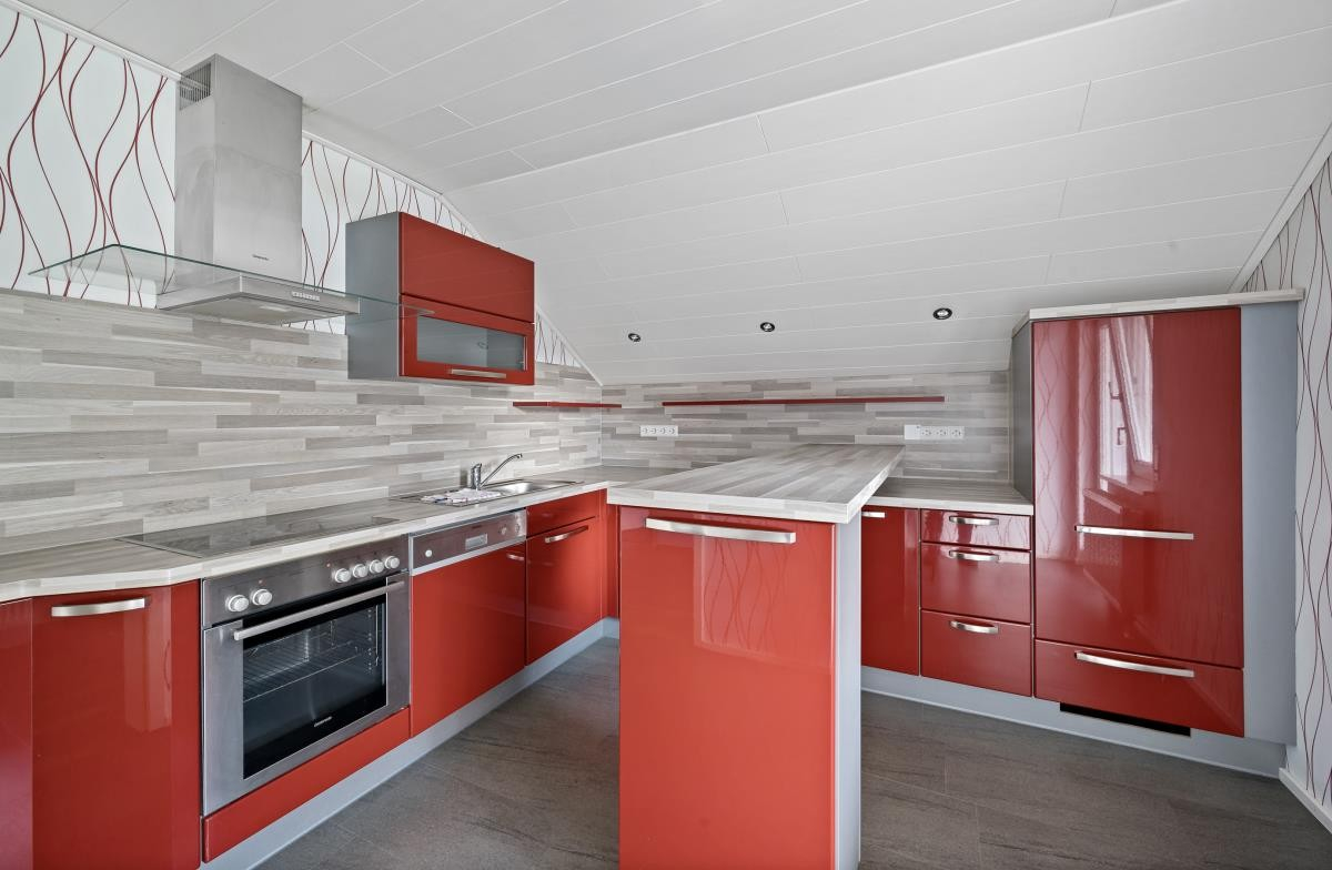 Die Wohnungen im Erd- und Dachgeschoss verfügen jeweils über Einbauküchen inkl. Elektrogeräten, die bereits im Kaufpreis enthalten sind.