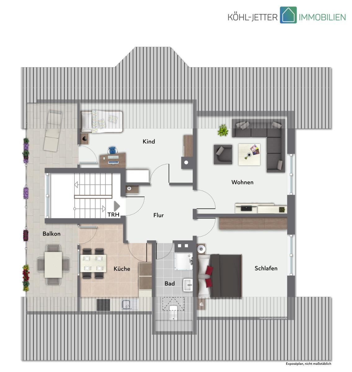 Im Dachgeschoss befindet sich eine weitere 3-Zimmer-Wohnung mit ca. 85 m² Wohnfläche.