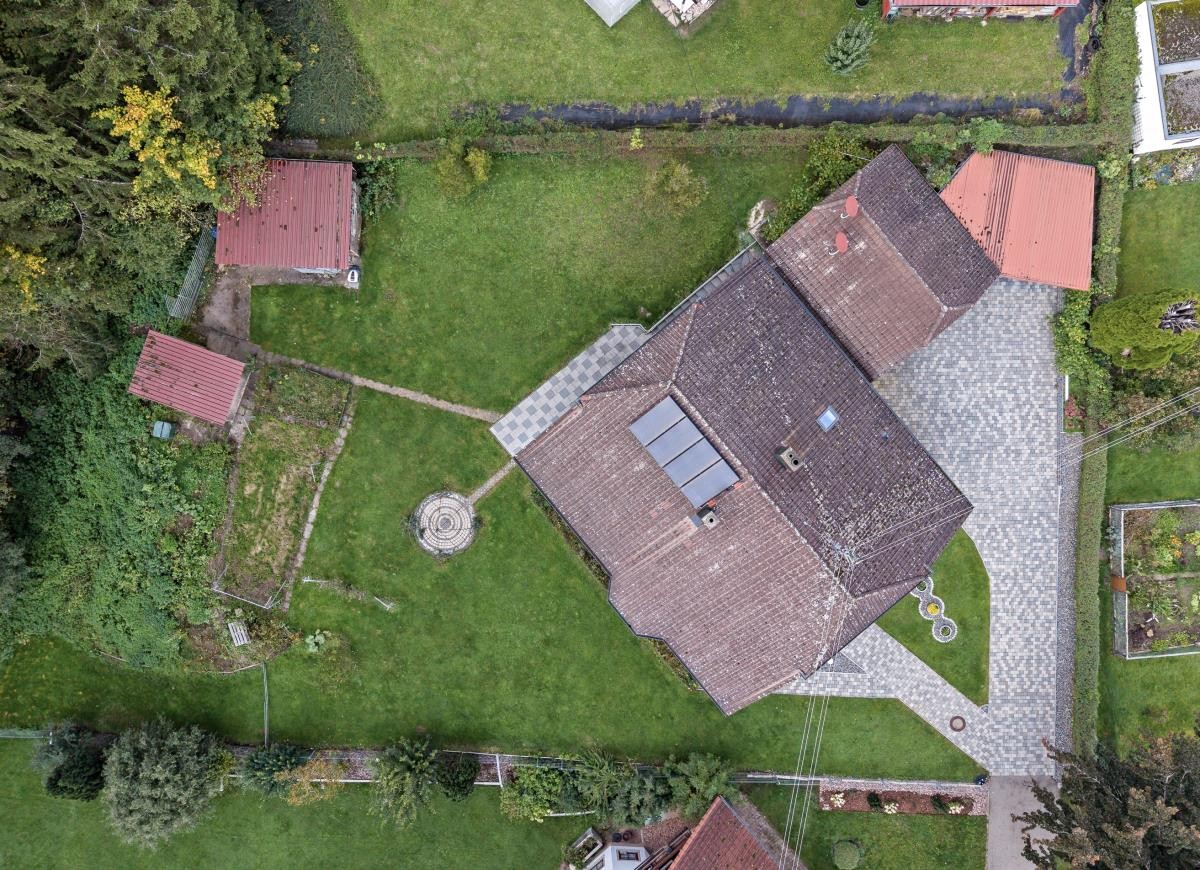 Die Lage am Ende einer Sackgasse direkt am Waldrand bietet Ruhe, Privatsphäre und ein naturnahes Wohngefühl.