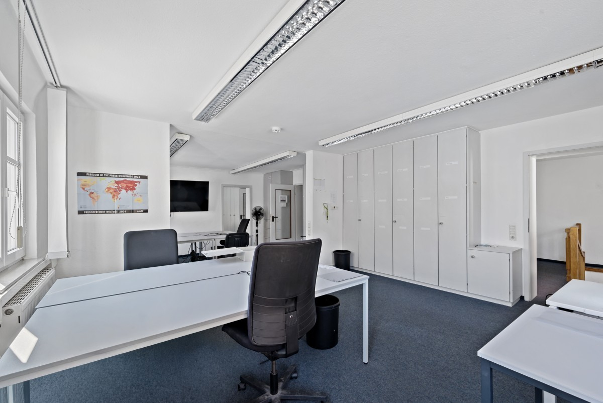 Im Erdgeschoss steht eine Gewerbe- bzw. Ladenfläche mit ca. 118 m² zur Verfügung. Im ersten sowie im zweiten Obergeschoss befinden sich jeweils weitere Gewerbeflächen mit ca. 133 m². Die Gewerbeeinheiten vom Erdgeschoss bis einschließlich des zweiten Obergeschosses sind derzeit an einen Mieter vermietet. Das Mietverhältnis läuft bis zum 31.12.2026, sodass die Flächen anschließend zur Neuvermietung, Eigennutzung oder Umstrukturierung zur Verfügung stehen.