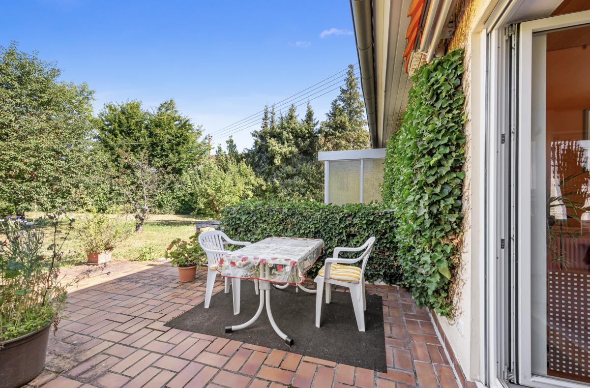 Der große Balkon, welcher über den Wohn-/Essbereich erreicht werden kann, bietet einen herrlichen Ausblick und lädt zum Entspannen ein. Zusätzlich steht Ihnen eine Terrasse mit Sondernutzungsrecht an einem weitläufigen Gartenbereich zur Verfügung – ideal für gemütliche Stunden im Freien oder für Hobbygärtner.