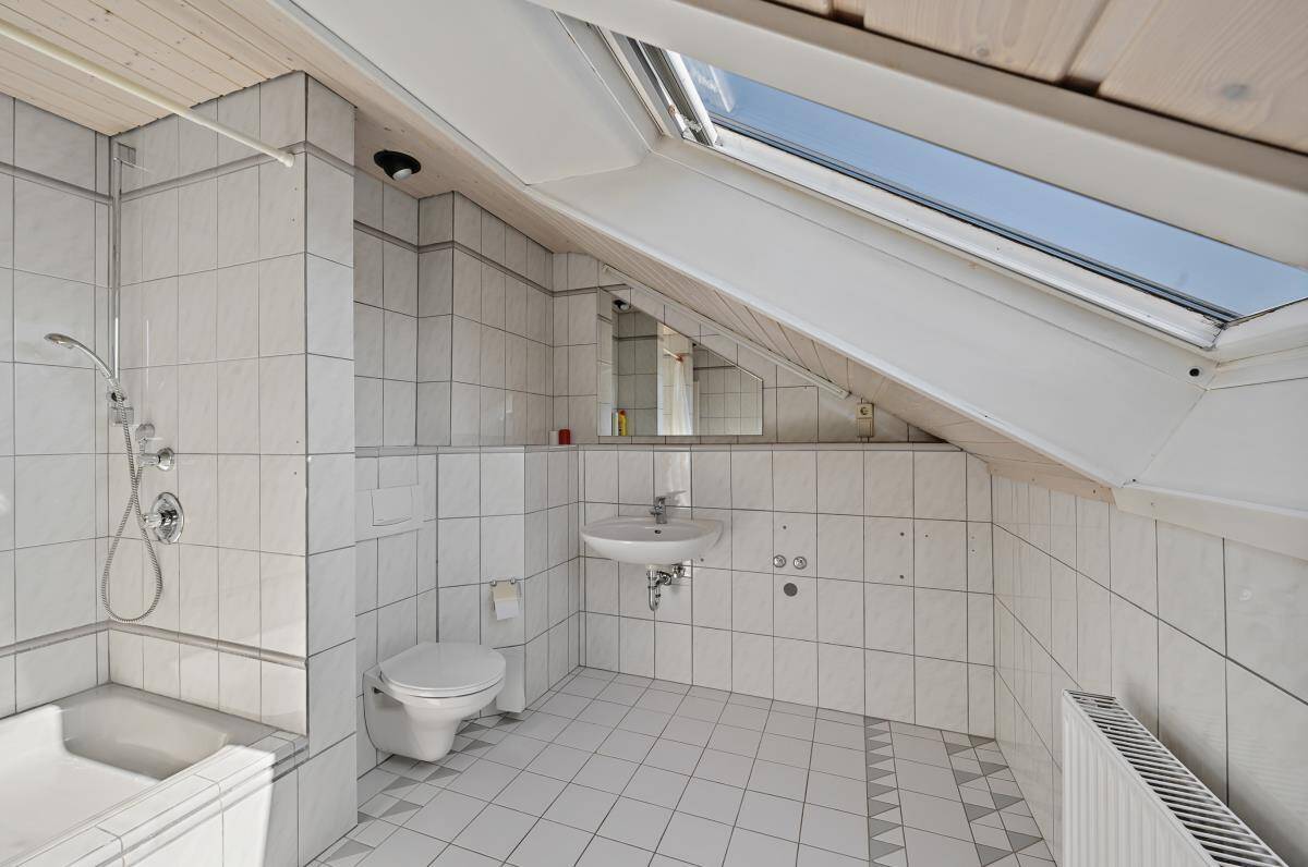 Das Tageslichtbad verfügt über eine Dusche und ein WC. Zudem befindet sich im Flurbereich ein separates Gäste-WC.