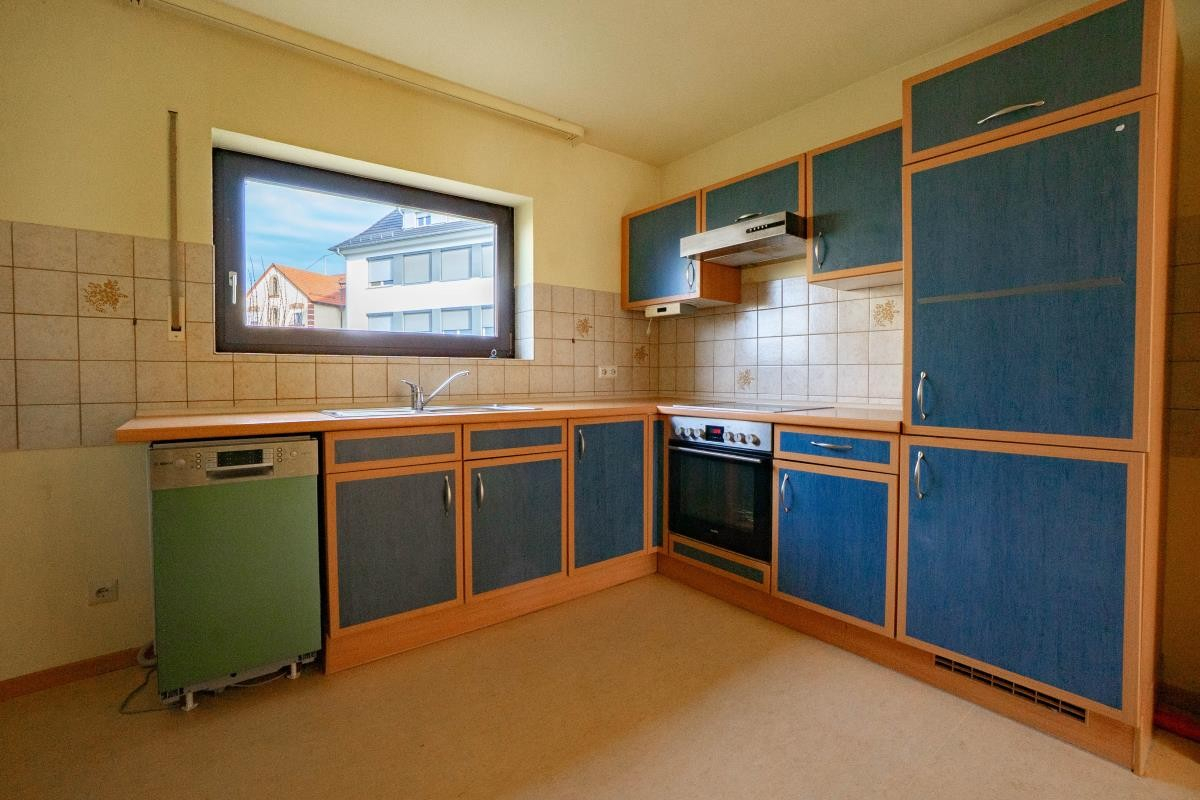 Der separate Küchenbereich ist mit einer Einbauküche inklusive Elektrogeräten ausgestattet und fügt sich funktional in das Wohnkonzept ein.