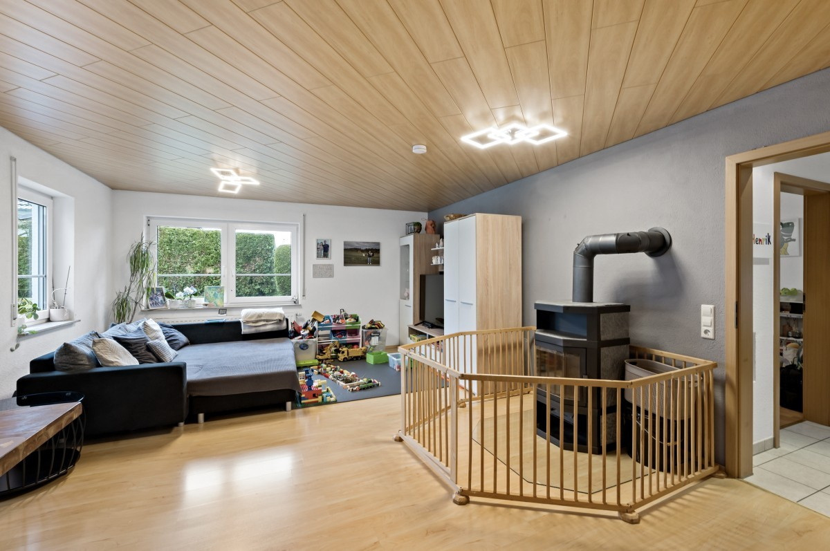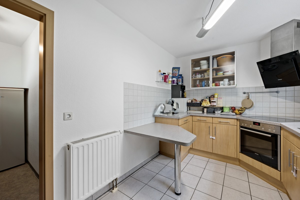 Im Wohnbereich sorgt ein vorhandener Holzofen für eine besonders gemütliche Atmosphäre und unterstreicht den charmanten Charakter der Wohnung. Eine Einbauküche ist bereits vorhanden und im Kaufpreis enthalten.