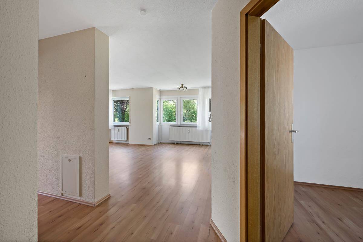 Einen großzügigen, hellen Wohn-/Essbereich mit angrenzendem, separatem Küchenbereich, ein Badezimmer mit Dusche, Badewanne und WC sowie zwei Schlafzimmer. Der Dielenbereich bietet Ihnen genügend Platz für eine Garderobe. Der Küchenbereich ist mit einer gepflegten Einbauküche (inkl. E-Geräte) ausgestattet und ist im Kaufpreis mit enthalten.