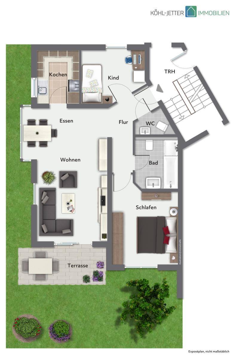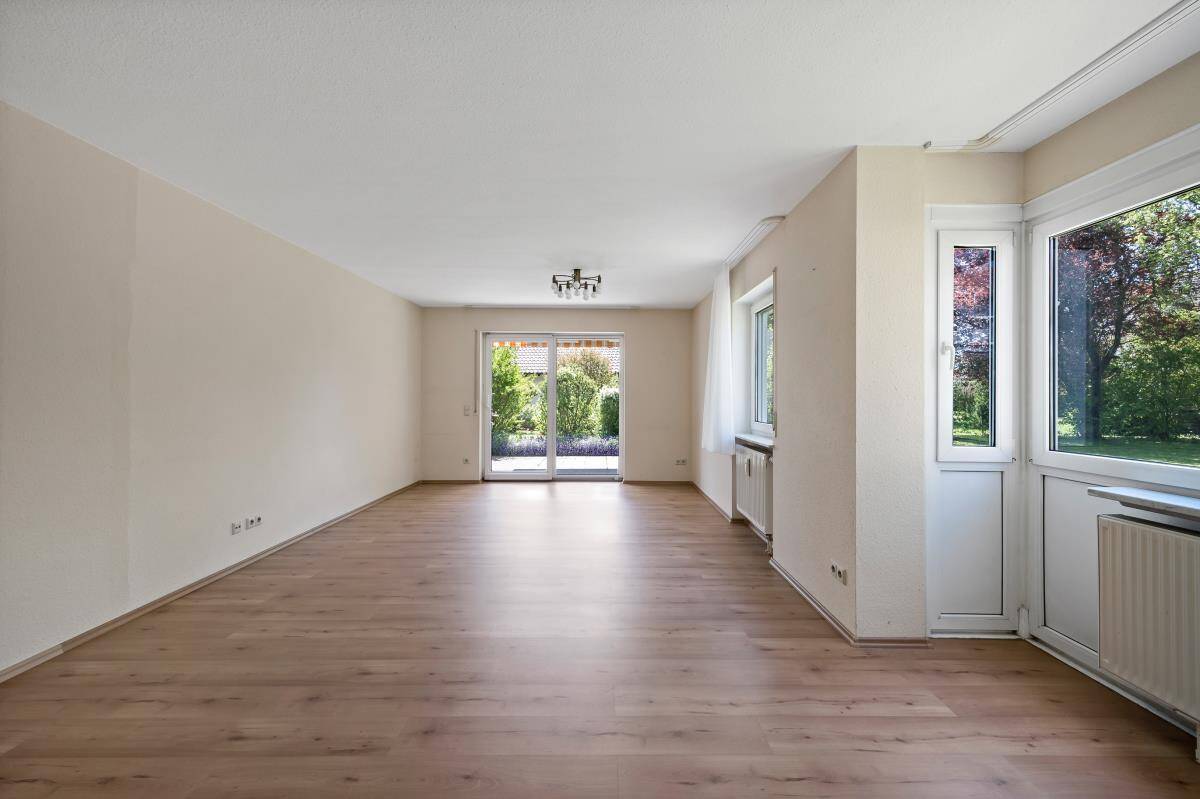 Über den Wohn-/Essbereich gelangen Sie auf den sonnigen Terrassenbereich in Südausrichtung mit Blick ins Grüne. Der angrenzende Gartenbereich steht Ihnen zur gemeinschaftlichen Nutzung zur Verfügung – rundum ein Platz zum Entspannen und Wohlfühlen!