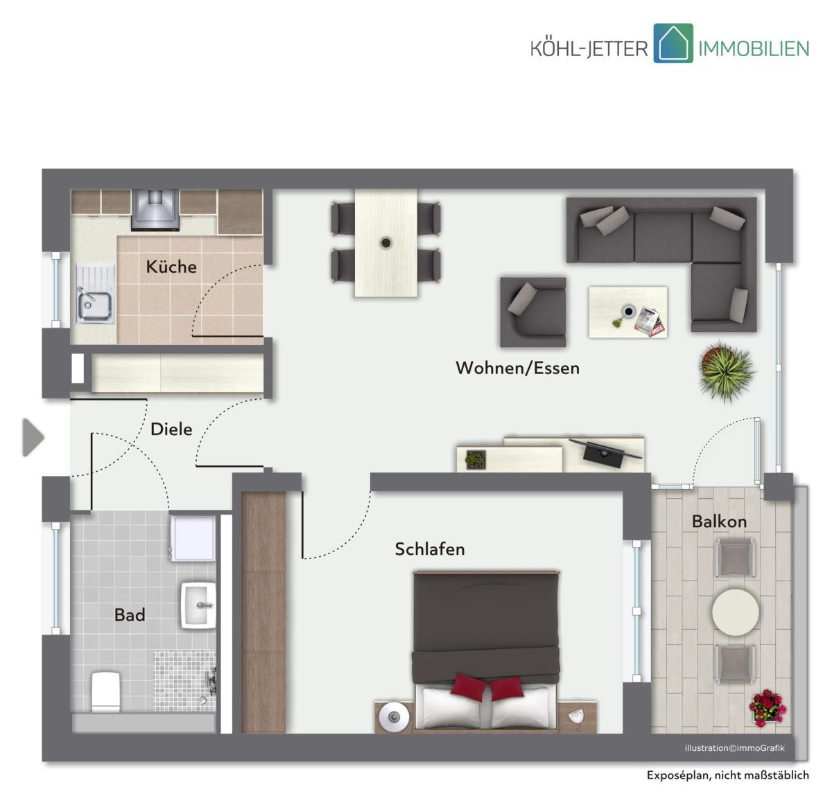 Diese gepflegte 2-Zimmer-Wohnung überzeugt mit schöner Raumaufteilung und idealer Größe. Die ca. 55 m² Wohnfläche bieten Ihnen einen großzügigen Wohn-/Essbereich, ein gemütliches Schlafzimmer sowie ein Tageslichtbad mit barrierefreier Dusche und WC.