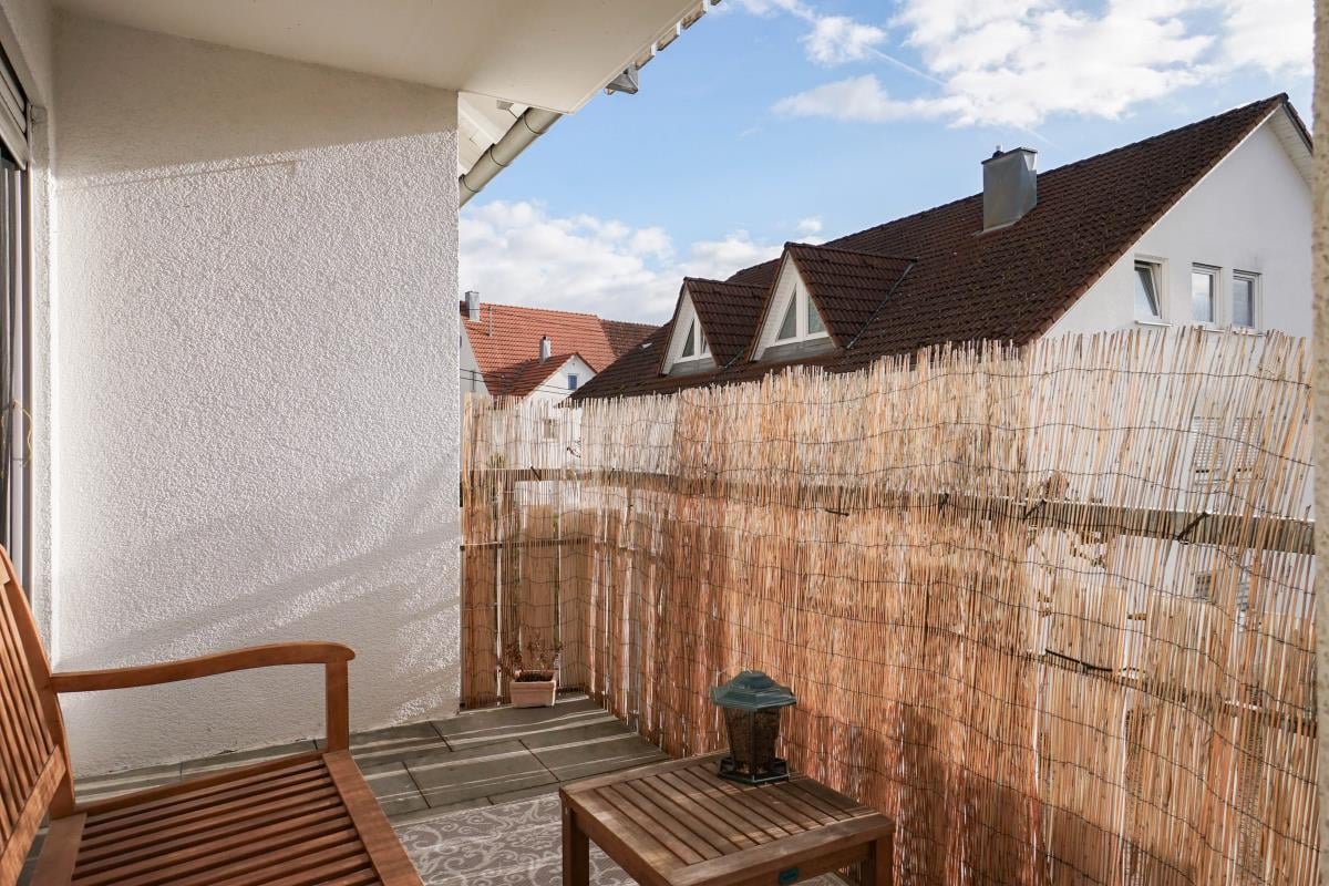 Vom Wohnbereich aus gelangen Sie auf den sonnigen Balkon in Südausrichtung, der mit einem schönen Blick ins Grüne zum Entspannen einlädt.