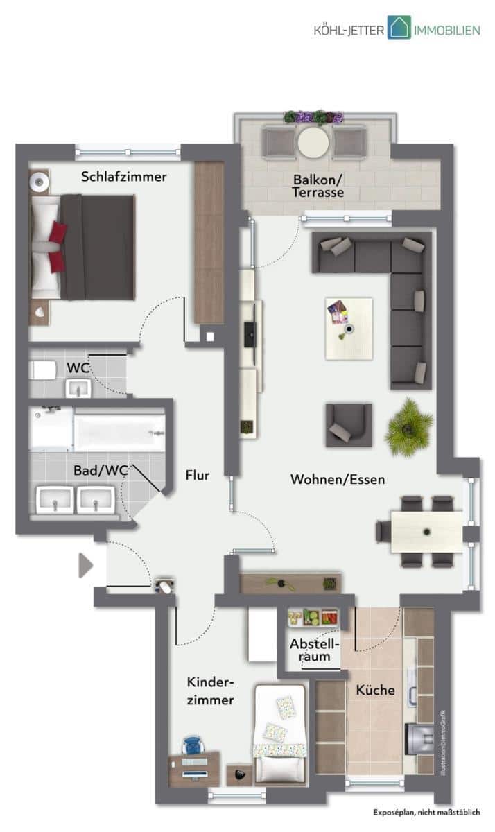 Diese ansprechend geschnittene 3,5-Zimmer-Wohnung überzeugt mit einem durchdachten Wohnkonzept und zahlreichen Wohlfühlfaktoren: