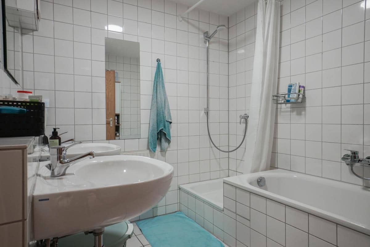 Das gepflegte Badezimmer ist sowohl mit einer Badewanne als auch mit einer Dusche ausgestattet.