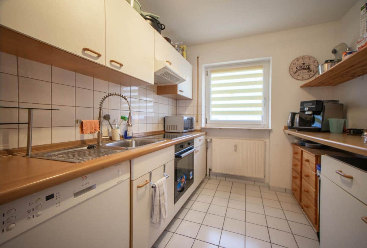 Die im Mietpreis enthaltene Einbauküche fügt sich stimmig in das Gesamtbild der Wohnung ein.