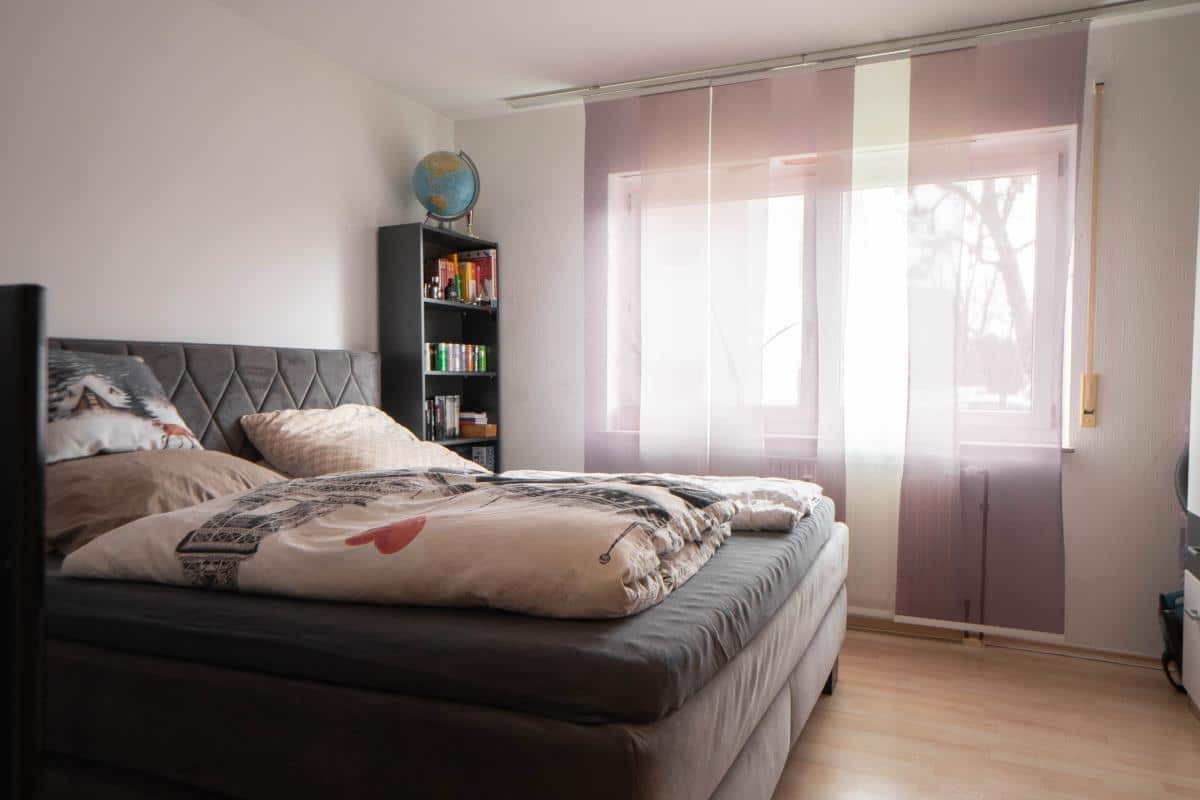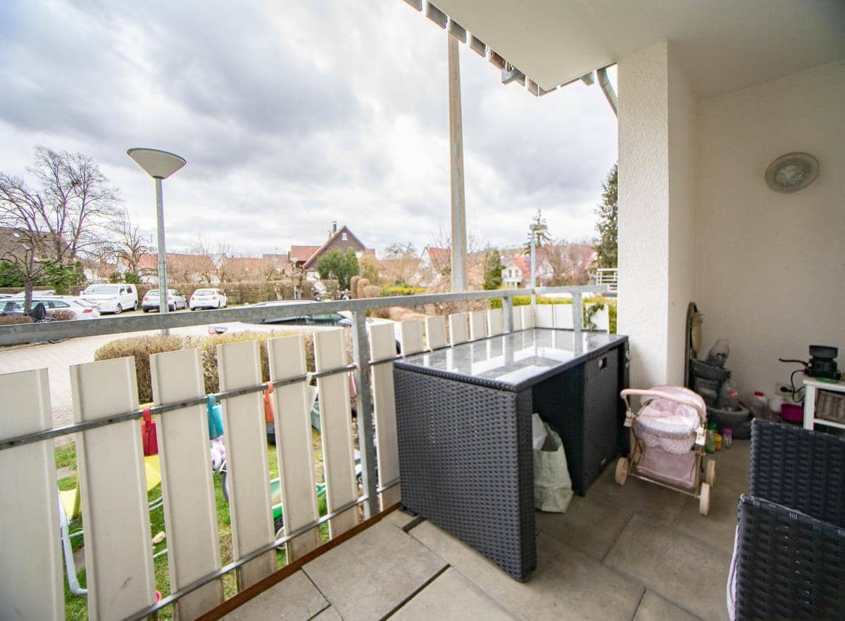 Von hier aus gelangen Sie auf den sonnigen, nach Süden ausgerichteten Balkon, der mit seinem Blick ins Grüne zum Verweilen und Entspannen einlädt.