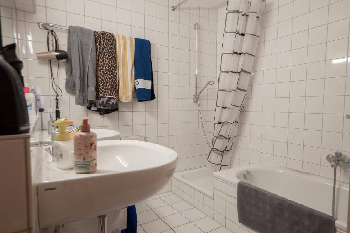 Das gepflegte Badezimmer verfügt sowohl über eine Badewanne als auch über eine Dusche.