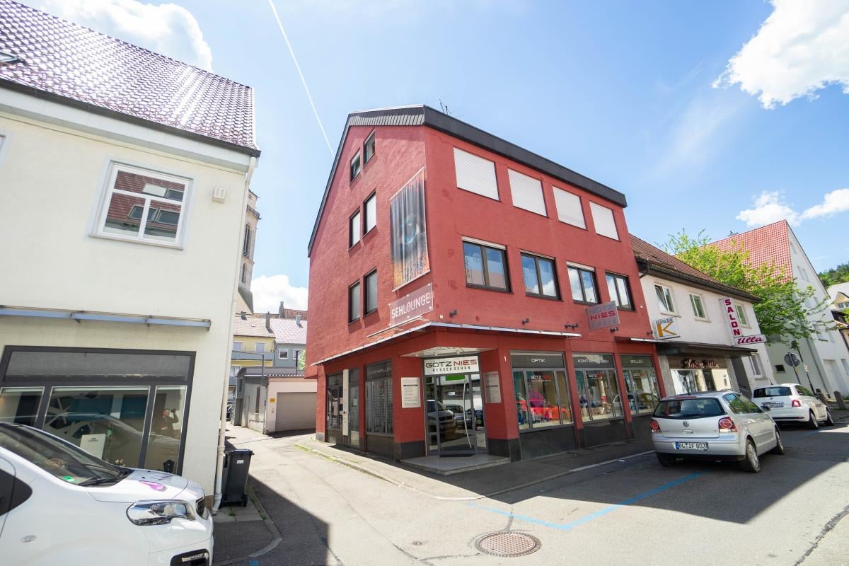 Die Wohnung befindet sich im Obergeschoss eines sehr gepflegten Wohn- und Geschäftshauses in Innenstadtlage von Balingen. Sie befinden sich bereits in der Balinger Innenstadt mit allen Einkaufsmöglichkeiten für den Alltag. Und in knapp 10 Minuten erreichen Sie das Zollernalbklinikum oder den Busbahnhof fußläufig.