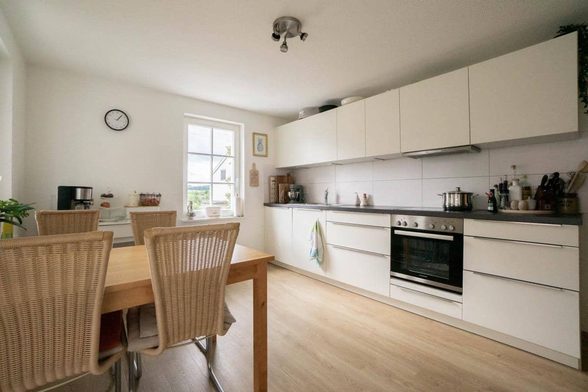 Die moderne Einbauküche ist bereits im Mietpreis enthalten.