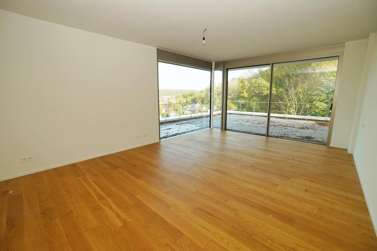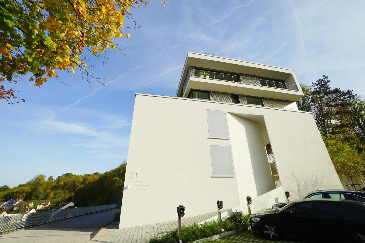 Dieses exklusive, neuwertige 5,5 Zimmer-Terrassenwohnung befindet sich in sonniger Bestlage von Tübingen am "Österberg". Die Architektur interpretiert eine nachhaltige Bauweise auf moderne Weise. Senkrechte Verkleidungslamellen, grafische Fensterbänder sowie großflächige Panoramafenster prägen das Äußere dieses sehr hochwertigen, im Jahr 2021 erbauten Hauses. Mit dem Aufzug gelangen Sie bequem, ohne Treppen, in die Wohnung.