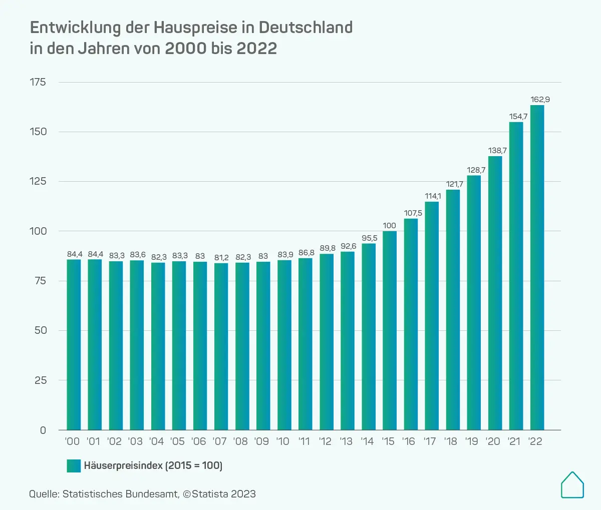 Dennoch konnte 2023 ein Rückgang der Preise festgestellt werden. Während der Häuserpreisindex ein Jahr zuvor 162,9 Punkte betrug, lag dieser im ersten Quartal des Jahres 2023 bei 152,1 Punkten.